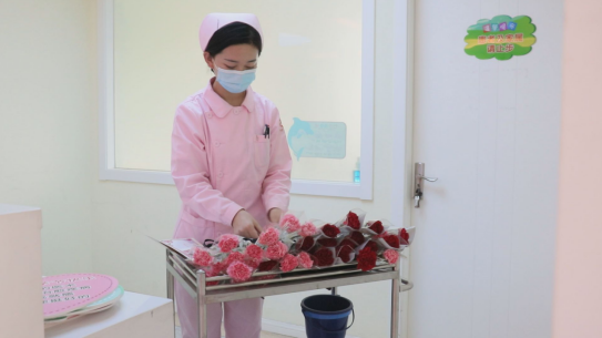 今天的太原天使与往日格外不同,空气中处处弥漫着淡淡的花香。一大早,护士小姐姐便推着载满鲜花的“感恩小车”,为院内的宝妈送上一束束爱的康乃馨,并向她们致以节日的问候,声声祝福中,表达了太原天使对于妈妈们的尊敬和关怀。