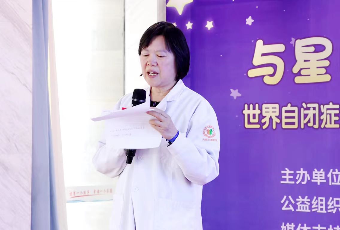 一曲终了,太原天使儿童医院贾晋凤院长上台致辞。贾院长在发言中说道:“在世界自闭症关注日到来之际,我们医院隆重举办这次活动,旨在关注自闭症患者,倡导社会给予这些‘星星的孩子’更多包容与理解。我们要用爱心和耐心去倾听他们的声音,用关怀和支持去温暖他们的心灵。”